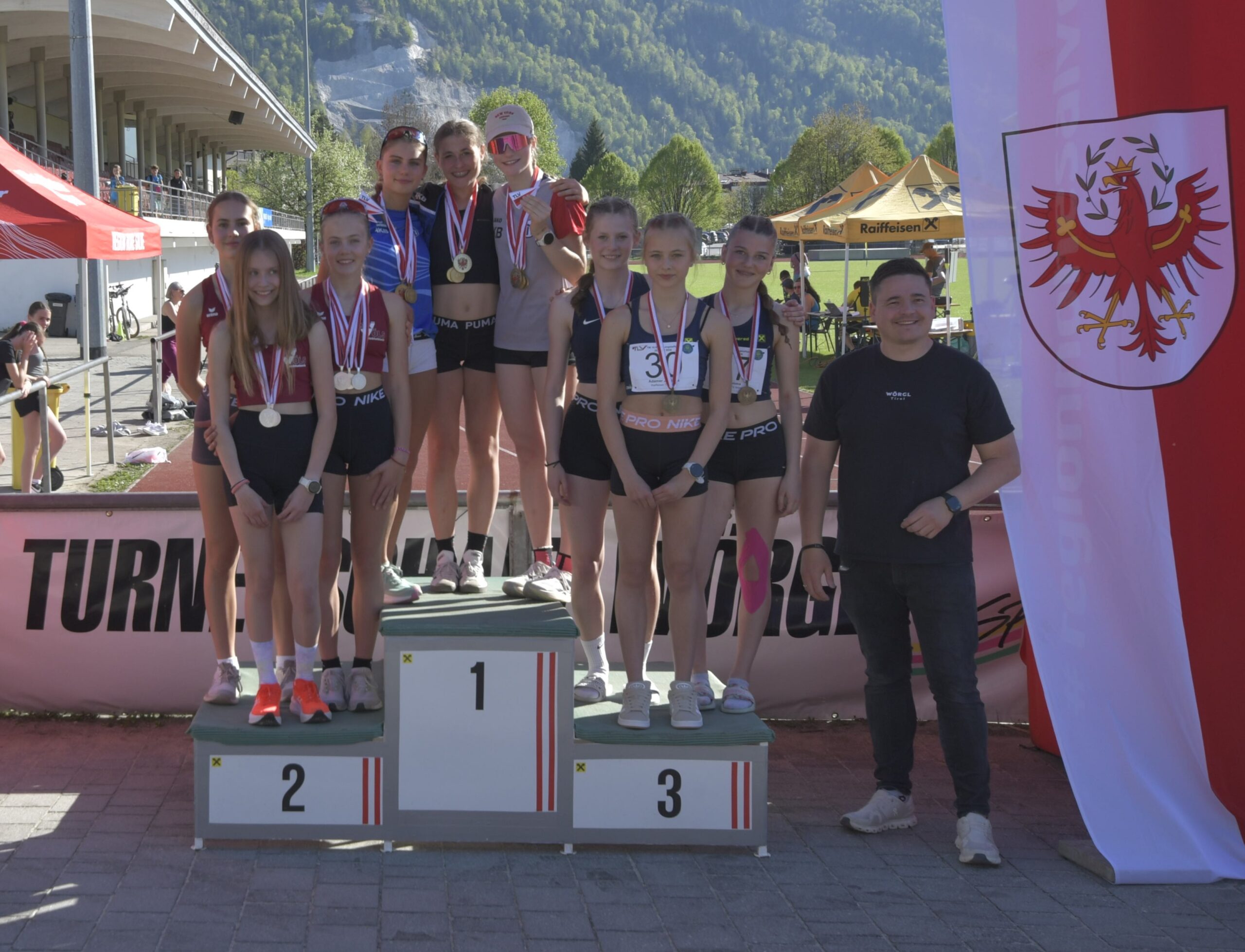 Wir haben für diese Meisterschaften leider nur 3 Staffeln für die 3 x 800m Staffel zusammengebracht, 2 x W/U16, 1 x W/U18, Die Leistungen unserer jungen Läuferinnen konnten sich aber sowas von sehen lassen, die TI1 Staffel mit drei U14 Athletinnen sind mitgelaufen um Erfahrung zu sammeln und haben sich total stark präsentiert, Alma Steiner, Ella Schuster und Franzi Irschick belegten den 6. Platz in der W/U16. In der W/U18 waren wir mit Zoey Kreidl, Sophie Altmann und Helena Ischia vertreten die den 3. Platz erreichen konnten. In einer eigenen Liga war die TI2 Staffel der U16 Mädchen mit Isabell Schweiberer als Startläuferin, Laura Todeschini und Mia Holzknecht als Schlussläuferin unterwegs sie konnten nicht nur die W/U16 und W/U18 Altersklasse gewinnen sondern sie holten sich auch überlegen den Meistertitel in der Allgem. Klasse. Großartige Leistungen aller Athletinnen zu denen wir herzlich Gratulieren wollen. Ergebnisse: Fotos: