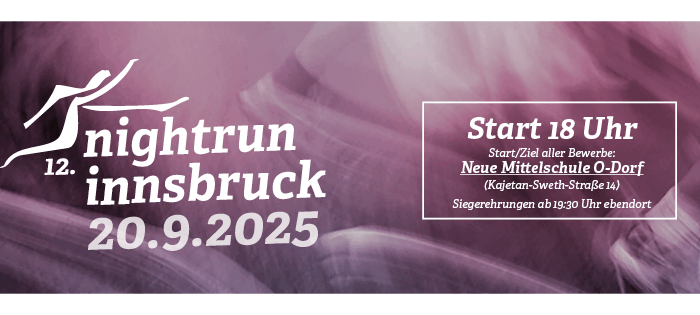 IN 4 STUNDEN geht's los, dann geben wir die ersten Startnummern für den 12. Nightrun Innsbruck aus. NACHMELDUNG. Von 11 bis 14 Uhr könnt ihr euch noch für einen der drei Bewerbe nachmelden. WO? Wiesengasse ...