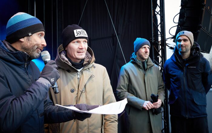 Die Schirmherren des 23. IKB Silvesterlaufes Innsbruck waren Bürgermeister Johannes Anzengruber (Stadt Innsbruck) und Alois Muglach (IKB Vorstand), im Bild mit Daniel Pichler, Obmann der Turnerschaft Innsbruck. Danke, dass ihr die Bewerbe mit uns eröffnet ...