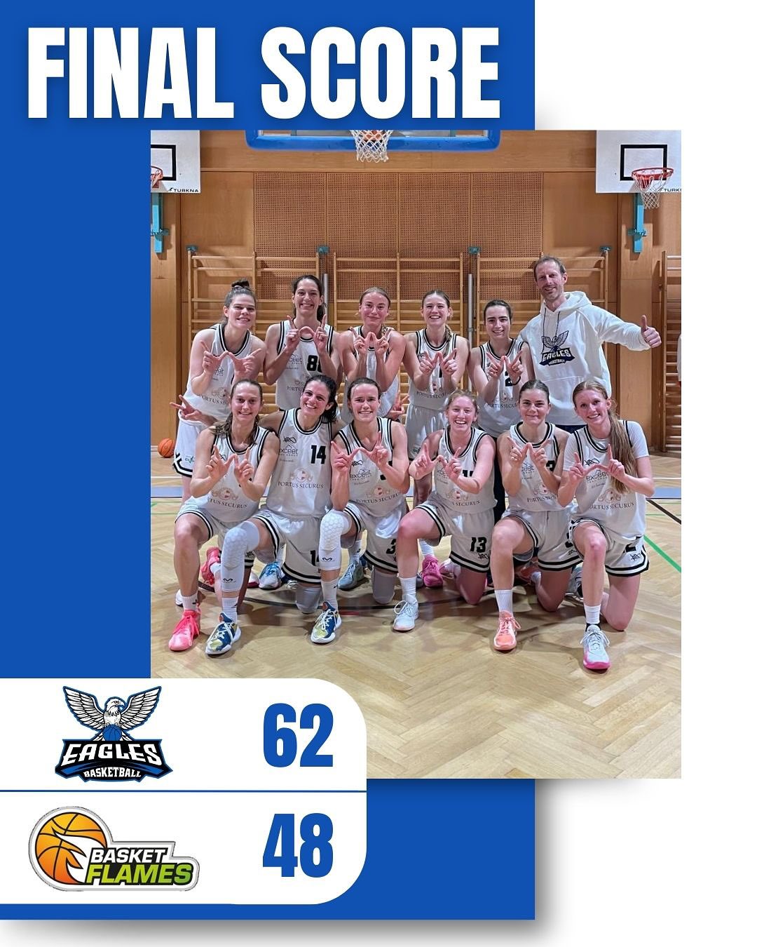 Am Sonntag trafen wir auf die bisher ungeschlagenen @flamesbabes_ . Trotz des Spiels am Vortag starteten wir mit viel Energie ins Spiel und konnten uns zum Ende des ersten Viertels bereits mit 12 Punkten absetzen. Durch eine sehr starke Defense konnten wir den Vorsprung über das ganze Spiel halten und gewannen das Spiel schließlich mit 62 zu 48.