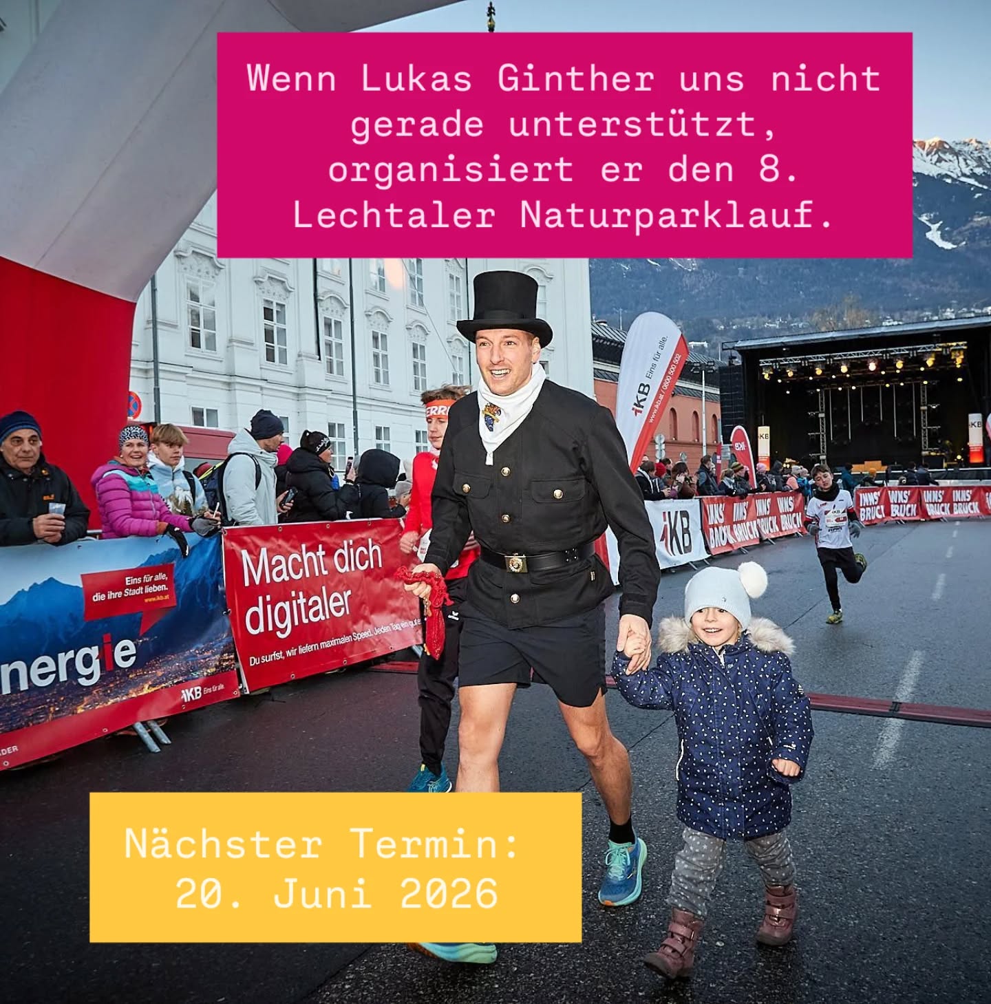 41. STADTLAUF INNSBRUCK am Sonntag, 31. Mai 2026 oder den 8. LECHTALER NATURPARKLAUF am Samstag, 20. Juni 2026.