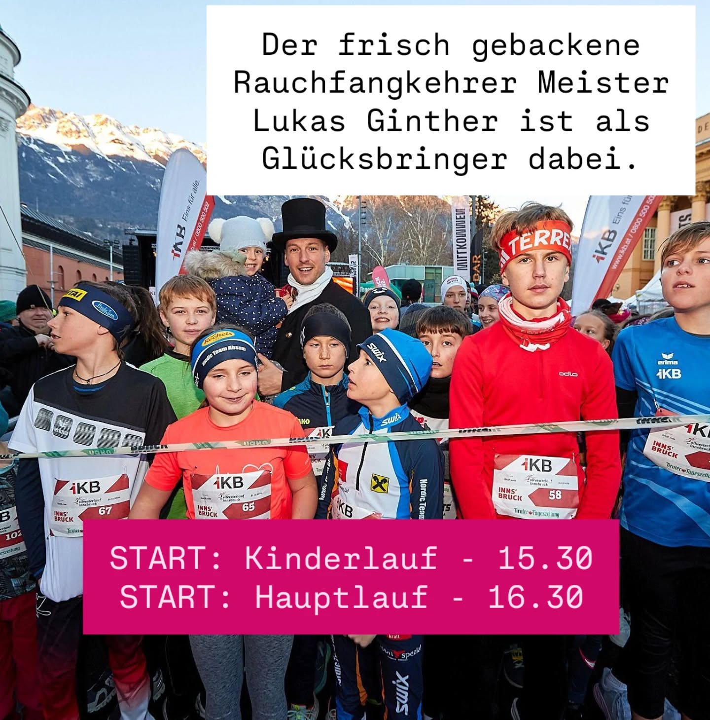 DER Rauchfangkehrer gehört zum Innsbrucker Silvesterlauf. Umso mehr freuen wir uns mit Lukas Ginther über die bestandene Meisterprüfung.