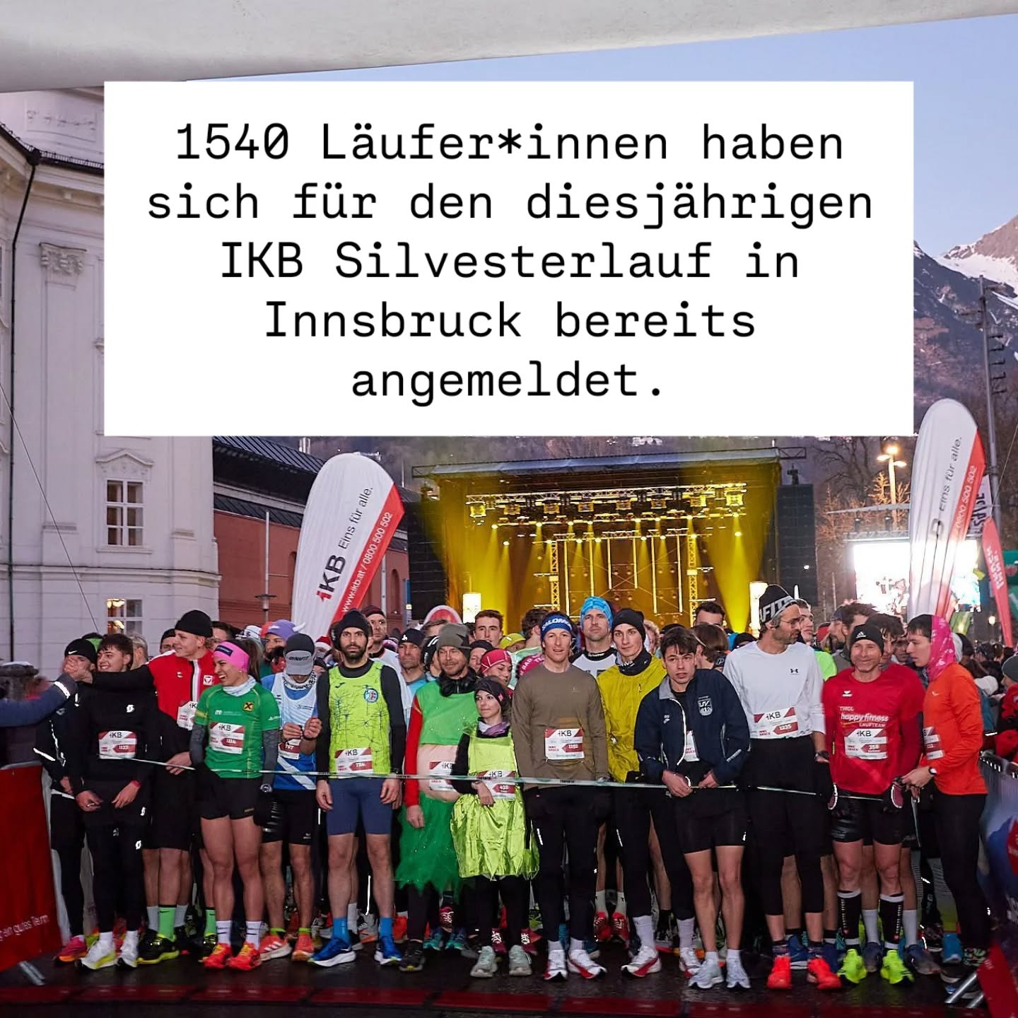 1534 Läufer*innen haben sich bis heute, Sonntagmittag, für den 23. IKB Silvesterlauf Innsbruck angemeldet. Das sind grandiose Nachrichten!!!