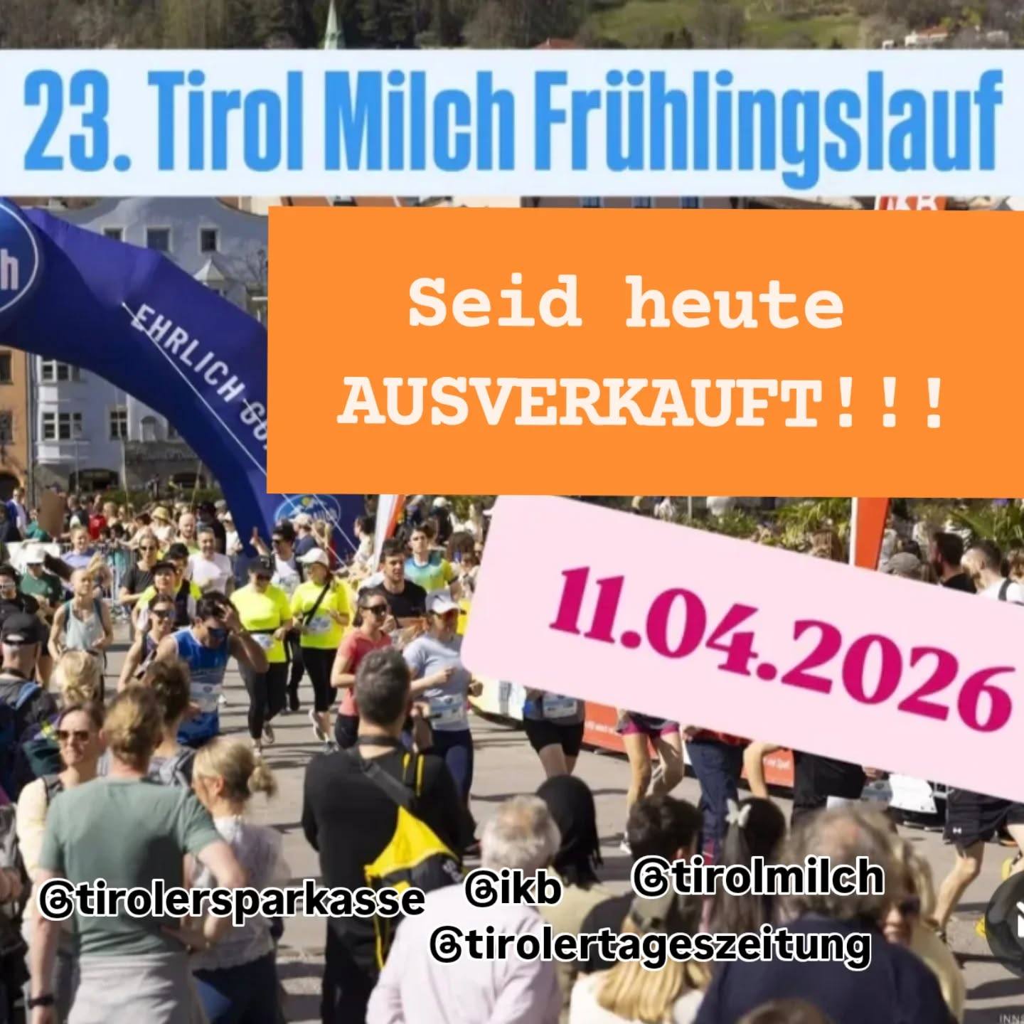 Wie viele von euch schon mitbekommen haben, ist der 24. TirolMilch Frühlingslauf bereits ausverkauft. Auf unserer Anmeldeseite gibt es den Hinweis, dass Anmeldungen nur noch mittels Codes möglich sind.